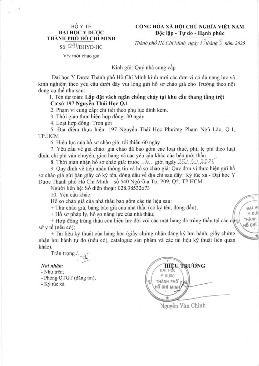 Thời gian nhận hồ sơ chào giá: từ ngày ra thông báo đến trước 16 giờ, ngày 25/3/2025