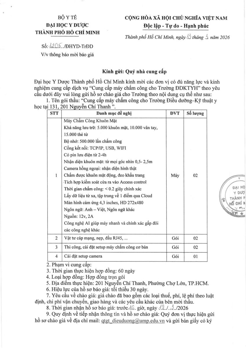 Thời gian nhận hồ sơ chào giá: từ ngày ra thông báo đến trước 16 giờ 00, ngày 19/3/2026