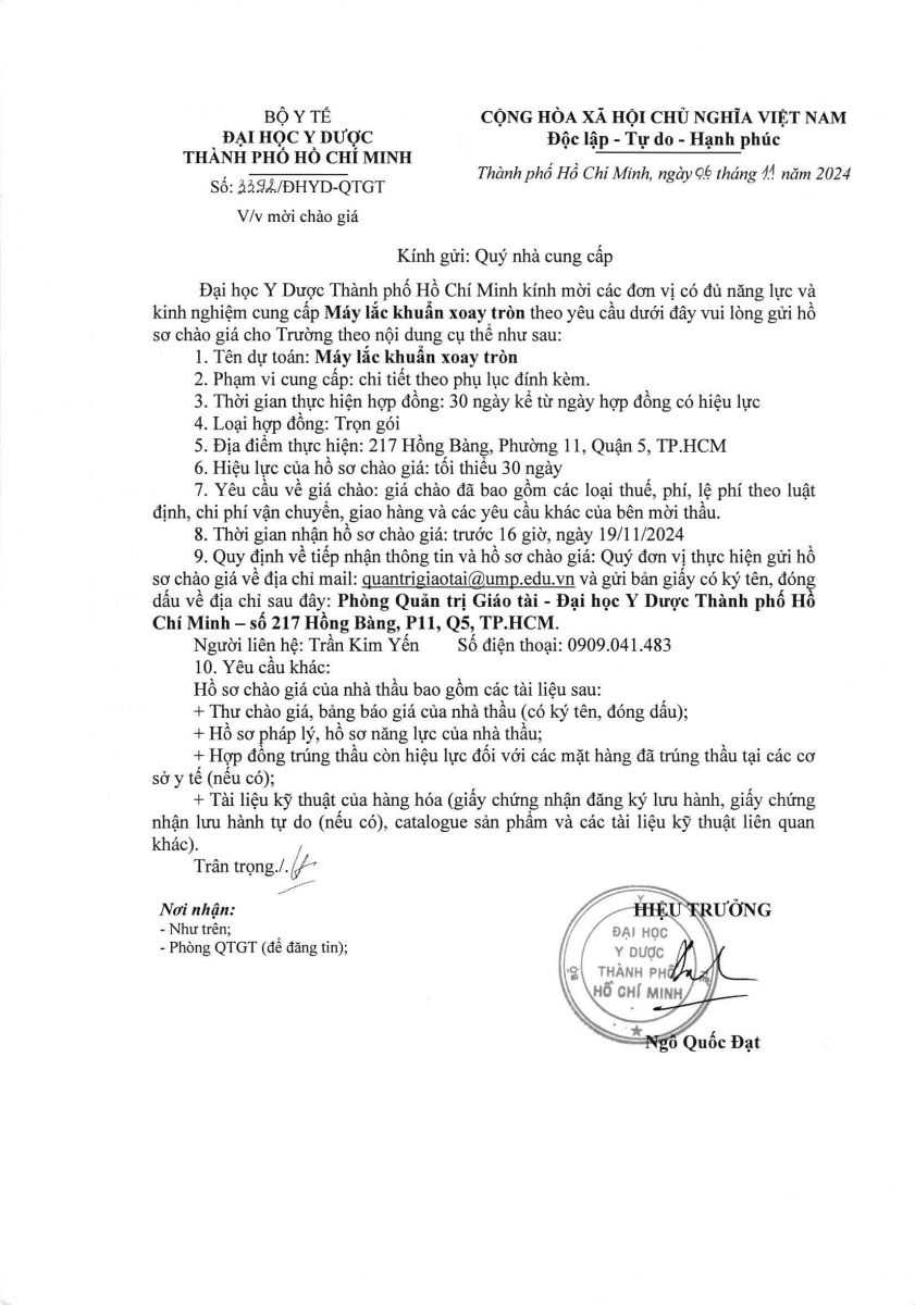 Thời gian nhận hồ sơ chào giá: từ ngày ra thông báo đến trước 16 giờ 00 ngày 19/11/2024