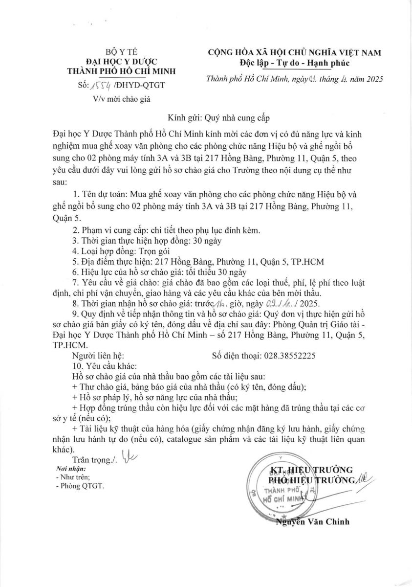 Thời gian nhận hồ sơ chào giá: từ ngày ra thông báo đến trước 16 giờ, ngày 09/4/2025