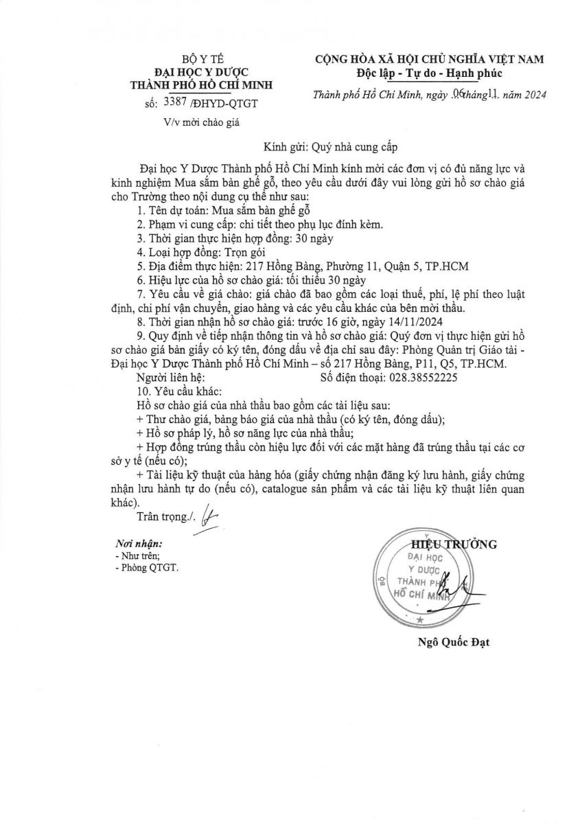 Thời gian nhận hồ sơ chào giá: từ ngày ra thông báo đến trước 16 giờ 00 ngày 14/11/2024