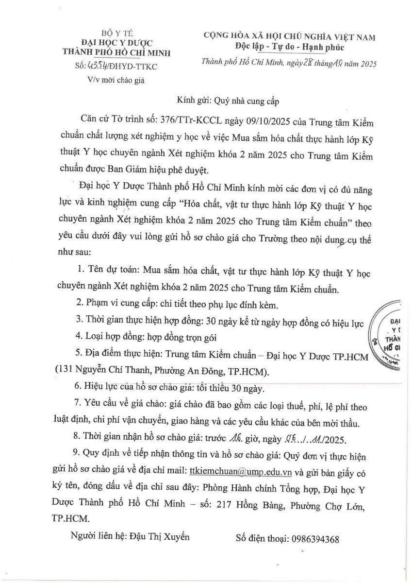 Thời gian nhận hồ sơ chào giá: từ ngày ra thông báo đến trước 16 giờ, ngày 06/11/2025
