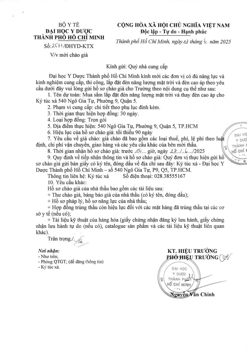 Thời gian nhận hồ sơ chào giá: từ ngày ra thông báo đến trước 16 giờ, ngày 27/6/2025