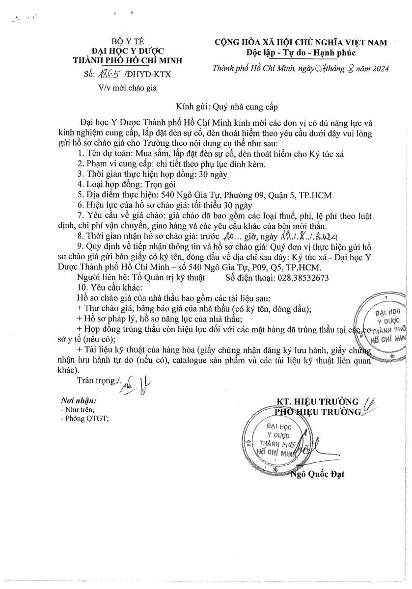Thời gian nhận hồ sơ chào giá: từ ngày ra thông báo đến trước 10 giờ 00 ngày 19/8/2024