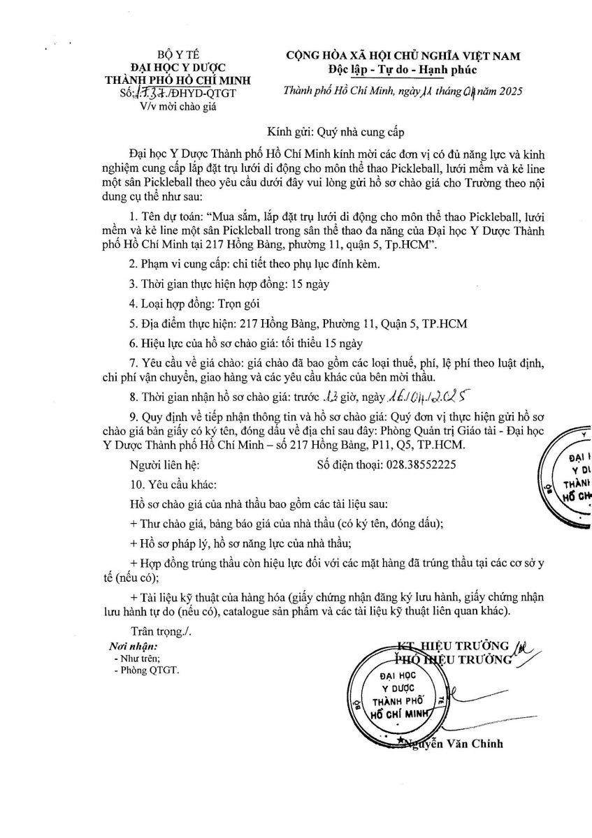 Thời gian nhận hồ sơ chào giá: từ ngày ra thông báo đến trước 13 giờ, ngày 16/4/2025