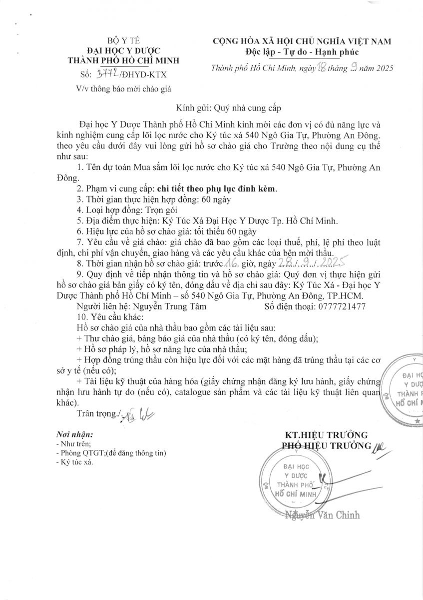 Thời gian nhận hồ sơ chào giá: từ ngày ra thông báo đến trước 16 giờ, ngày 28/9/2025