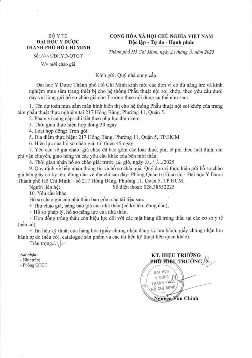 Thời gian nhận hồ sơ chào giá: Từ ngày ra thông báo đến trước 16 giờ, ngày 31/3/2025