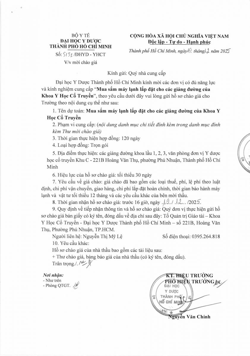 Thời gian nhận hồ sơ chào giá: từ ngày ra thông báo đến trước 16 giờ, ngày 19/12/2025