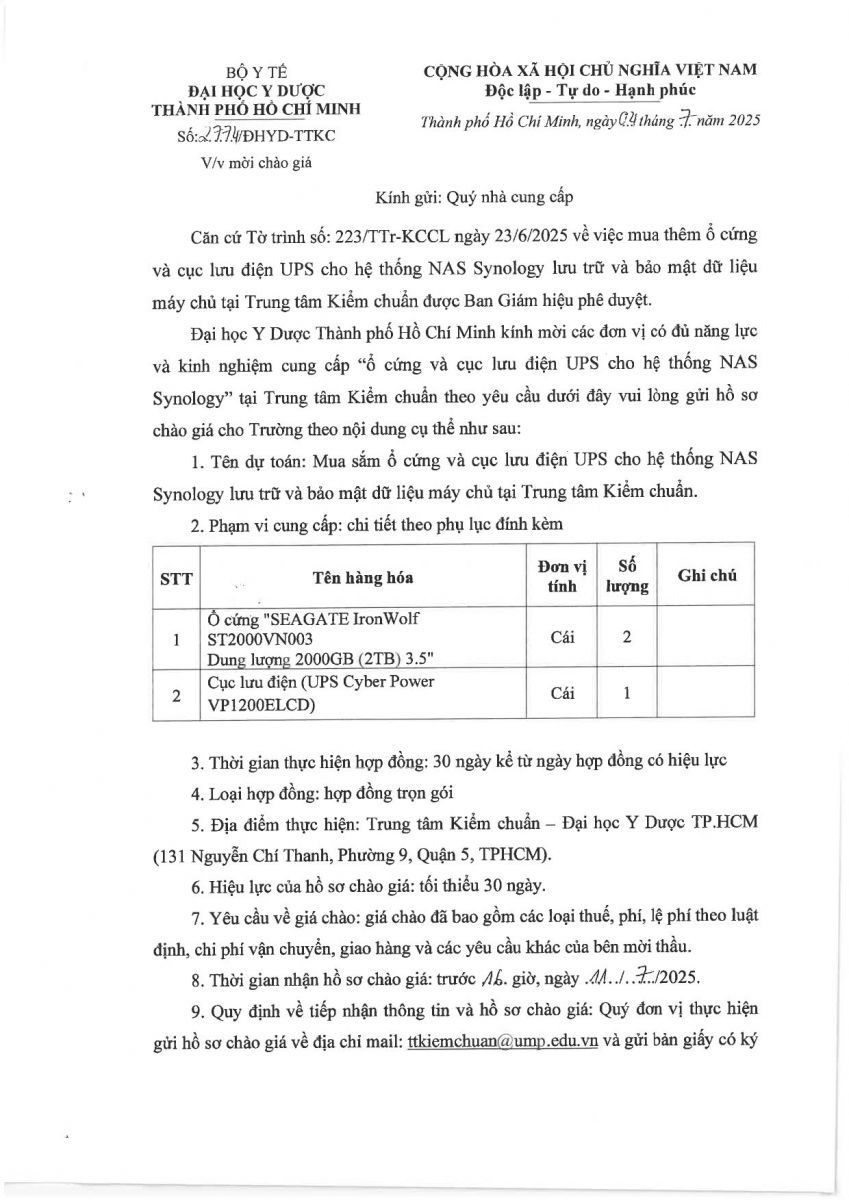 vx88 code mời chào giá: "Mua sắm ổ cứng và cục lưu điện UPS cho hệ thống NAS Synology lưu trữ và bảo mật dữ liệu máy chủ tại vx88 esball Kiểm chuẩn Chất lượng và Xét nghiệm Y học" - Đại Học vx88b TP.HCM
