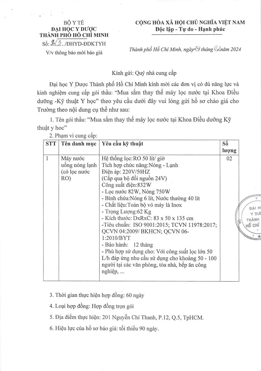 Thời gian nhận hồ sơ chào giá: từ ngày ra thông báo đến trước 16 giờ, ngày 03/3/2025