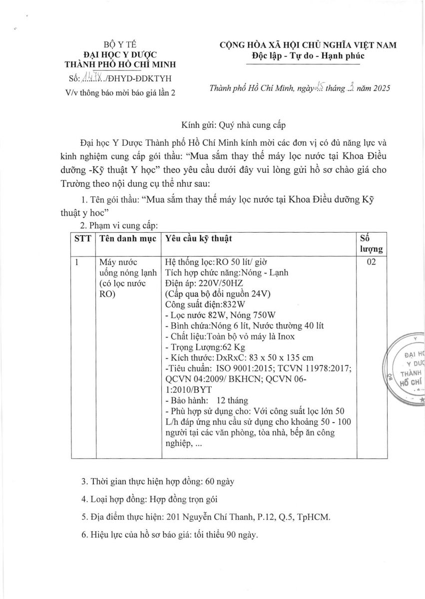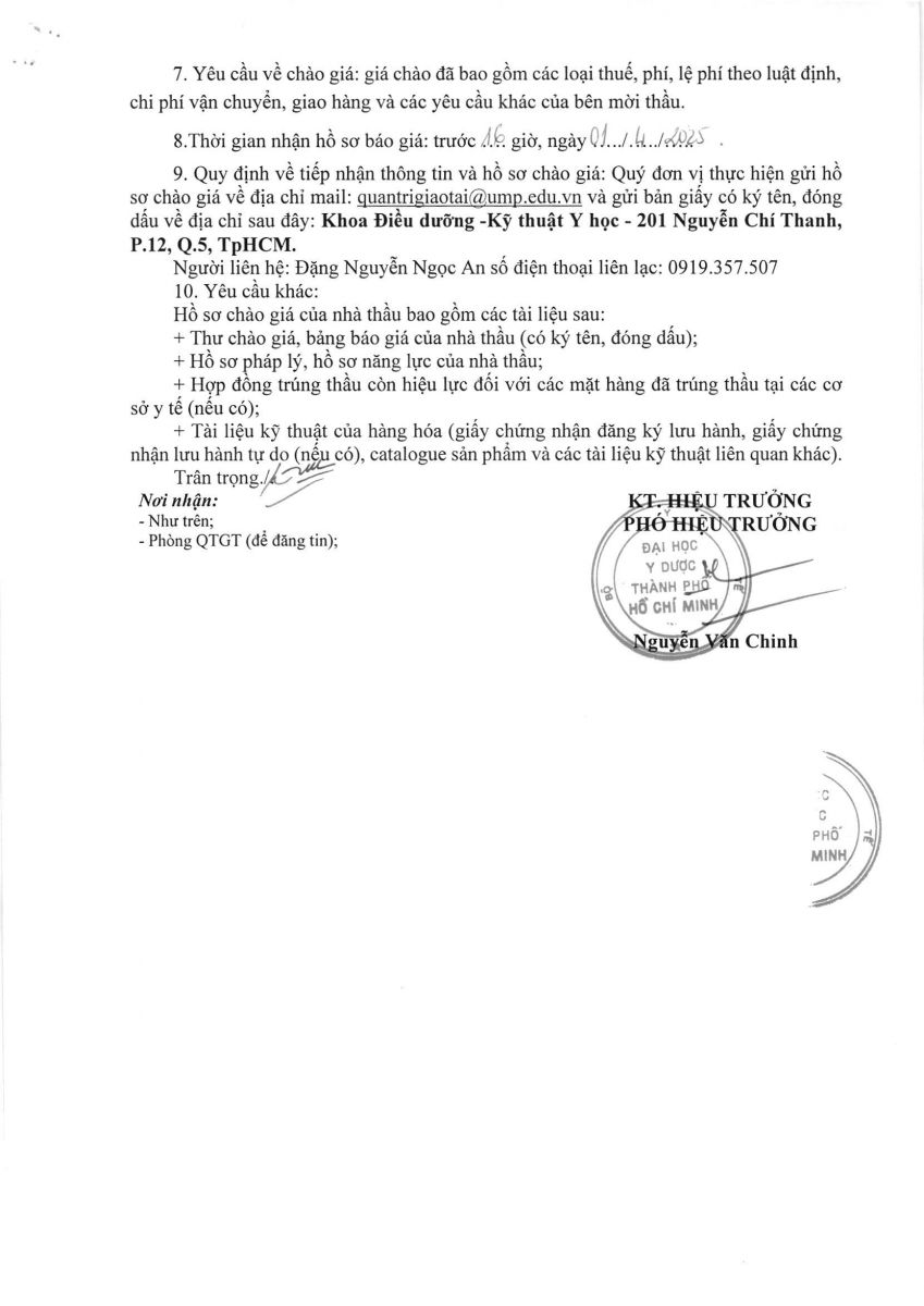Thời gian nhận hồ sơ chào giá: từ ngày ra thông báo đến trước 16 giờ,ngày 01/4/2025