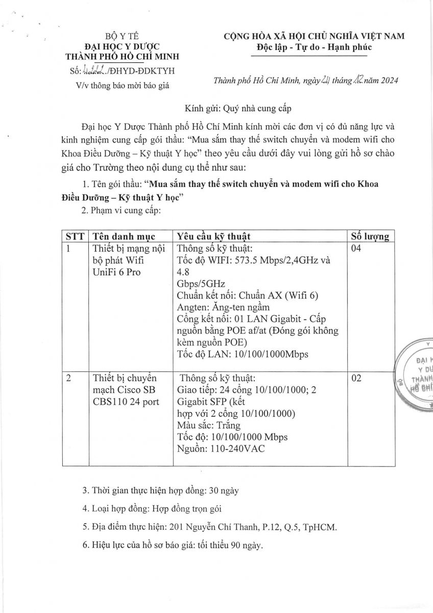 Thời gian nhận hồ sơ chào giá: từ ngày ra thông báo đến trước 16 giờ, ngày 03/01/2025