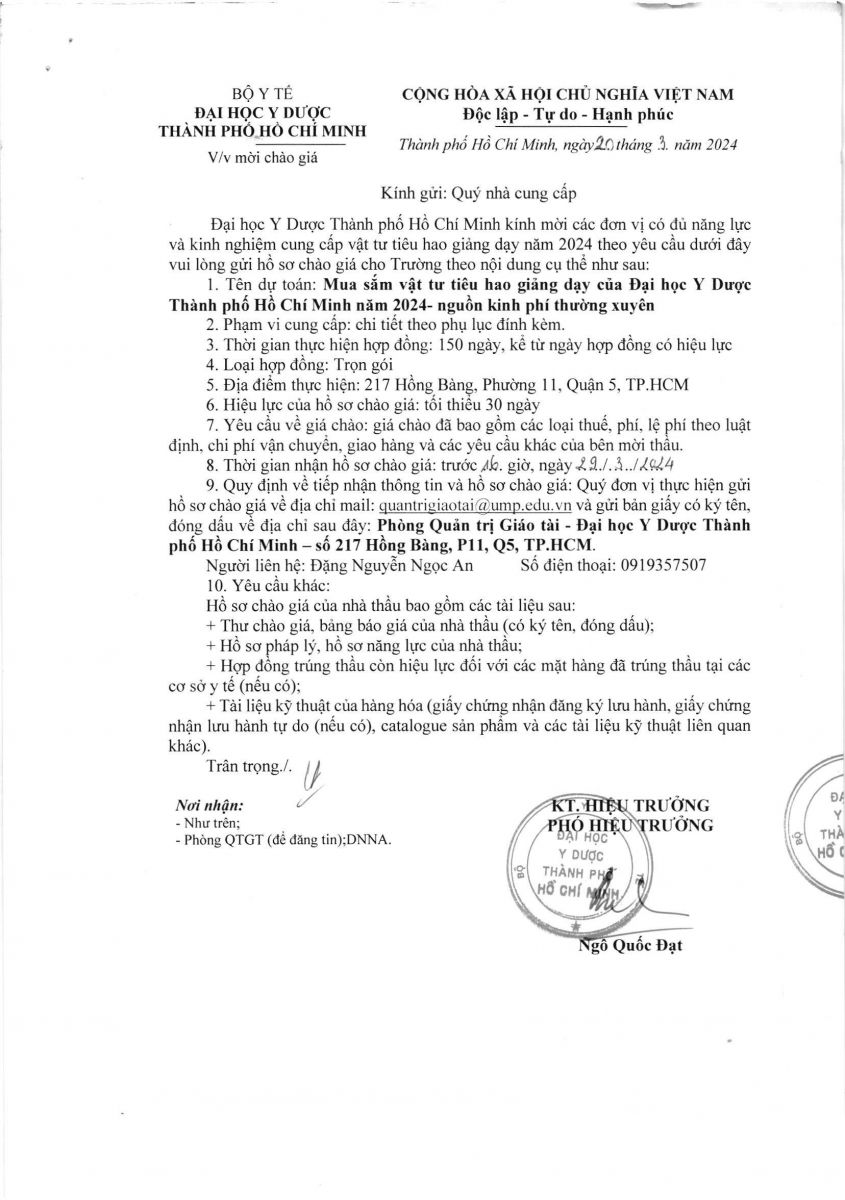 Thời gian nhận hồ sơ chào giá: từ ngày ra thông báo đến trước 16 giờ 00' ngày 29/3/2024