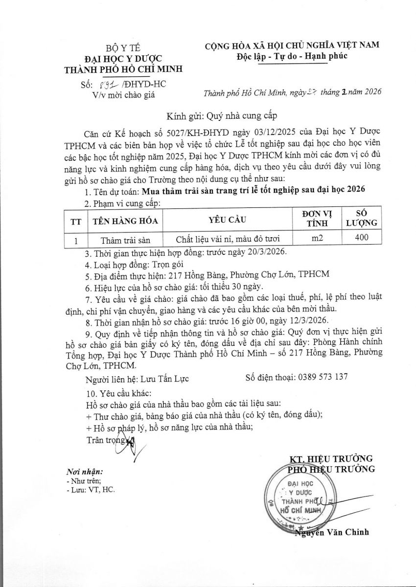 Thời gian nhận hồ sơ chào giá: từ ngày ra thông báo đến trước 16 giờ 00, ngày 12/3/2026.