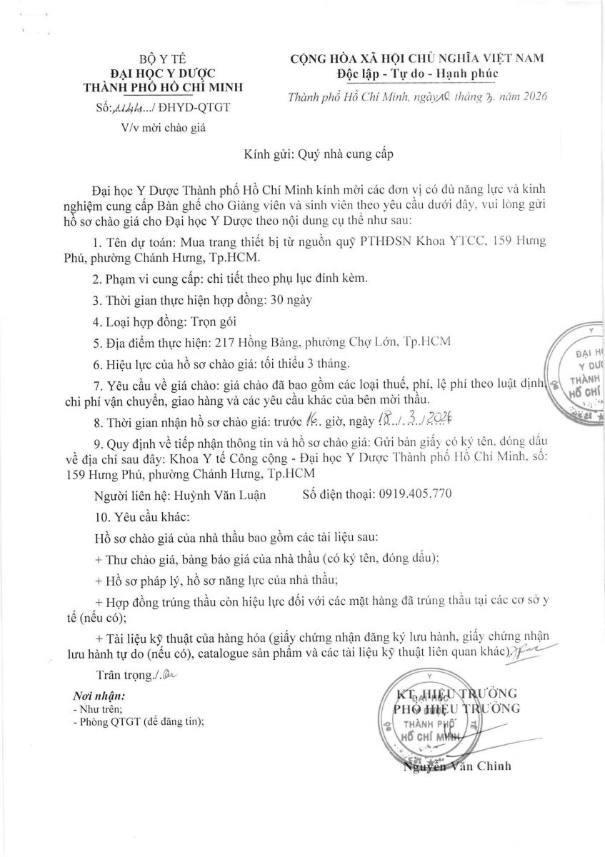 Thời gian nhận hồ sơ chào giá: từ ngày ra thông báo đến trước 16 giờ 00, ngày 18/3/2026