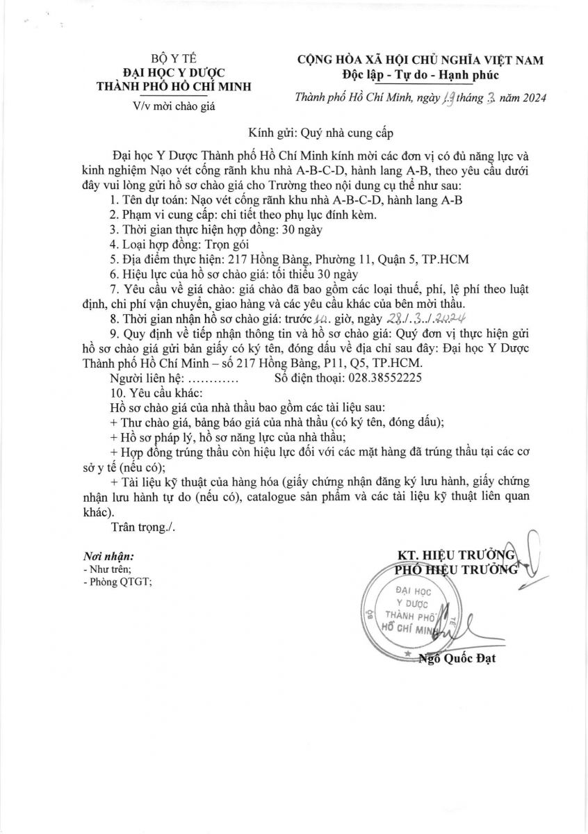 Thời gian nhận hồ sơ chào giá: từ ngày ra thông báo đến trước 10 giờ 00' ngày 28/3/2024