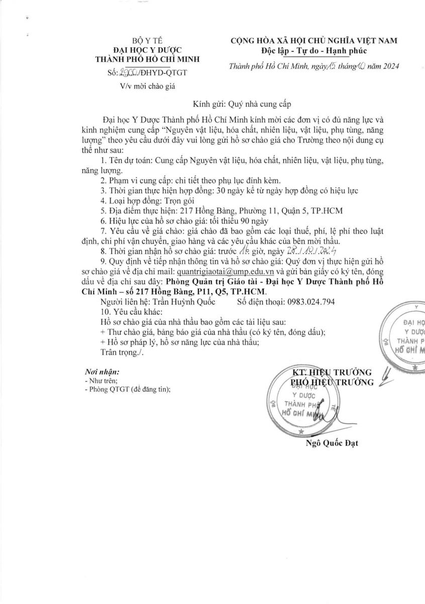 Thời gian nhận hồ sơ chào giá: từ ngày ra thông báo đến trước 16 giờ 00 ngày 28/10/2024