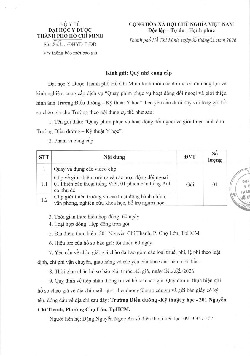 Thời gian nhận hồ sơ chào giá: từ ngày ra thông báo đến trước 16 giờ, ngày 04/02/2026