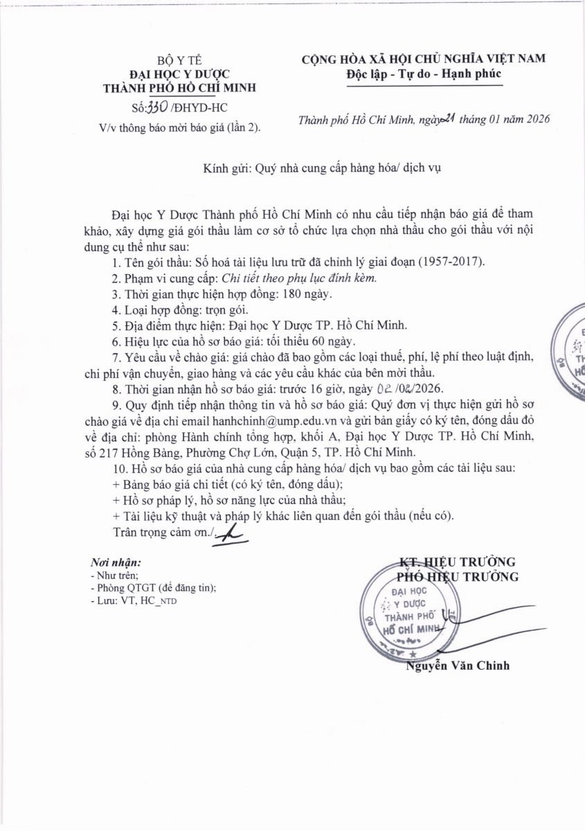 Thời gian nhận hồ sơ chào giá: từ ngày ra thông báo đến trước 16 giờ, ngày 02/02/2026