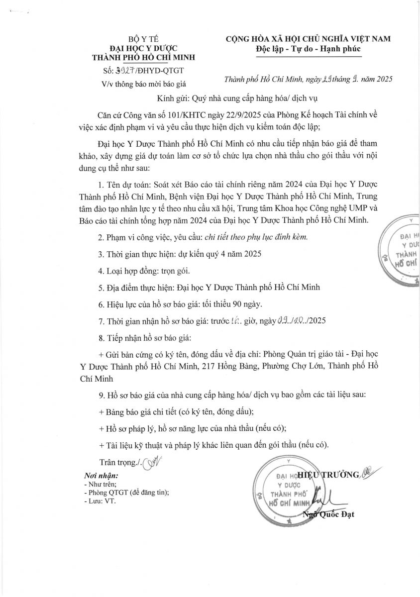 Thời gian nhận hồ sơ chào giá: từ ngày ra thông báo đến trước 16 giờ ngày 09/10/2025