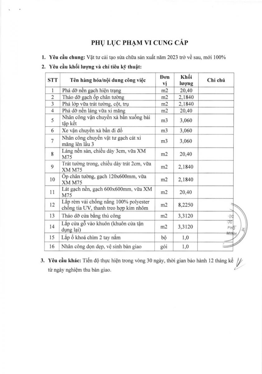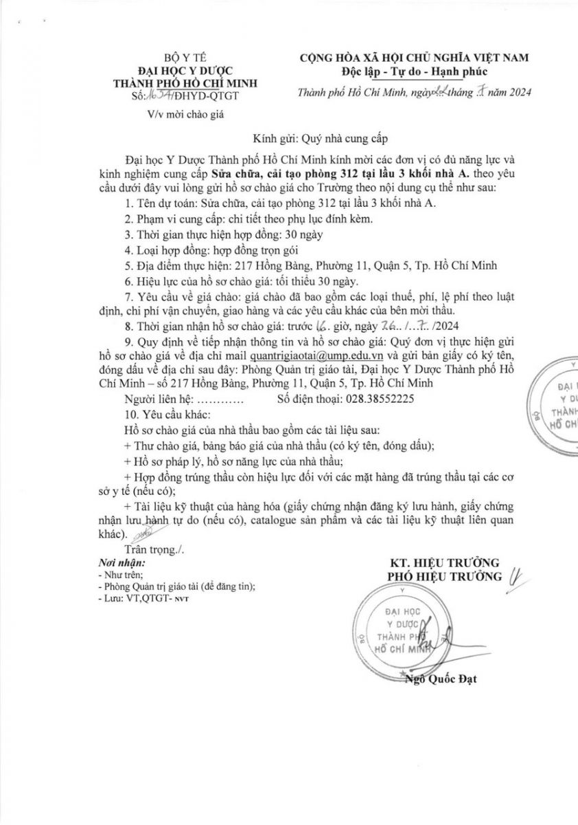 Thời gian nhận hồ sơ chào giá: từ ngày ra thông báo đến trước 16 giờ 00 ngày 26/7/2024