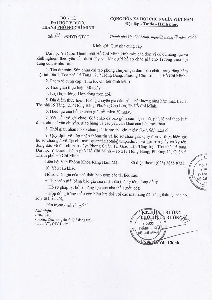 Thời gian nhận hồ sơ chào giá: từ ngày ra thông báo đến trước 16 giờ, ngày 04/02/2026