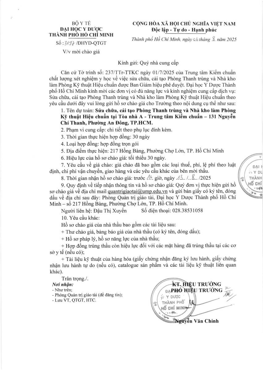 vx88 code mời chào giá: "Sửa chữa, cải tạo Phòng Thanh Trùng và Nhà kho làm phòng Kỹ Thuật hiệu chuẩn tại nhà A - vx88 esball Kiểm chuẩn Chất lượng và Xét nghiệm Y học " - Đại Học vx88b TP.HCM
