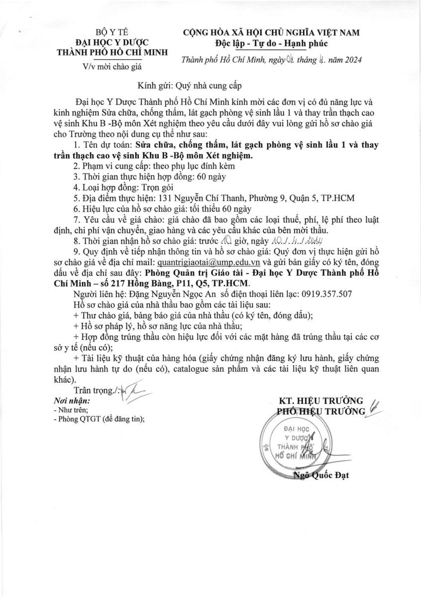vx88 code mời chào giá: "Sửa chữa, chống thấm, lát gạch phòng vệ sinh lầu 1 và thay trần thạch cao vệ sinh khu B - BM Xét Nghiệm" Khoa ĐDKTYH - vx88 esball vx88b