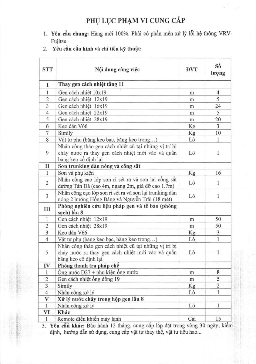 vx88 code mời chào giá: "Sửa chữa cung cấp vật tư thiết bị máy lạnh trung tâm tầng 11, tầng 8,....tại 217 Hồng Bàng”- Đại Học vx88b TP.HCM