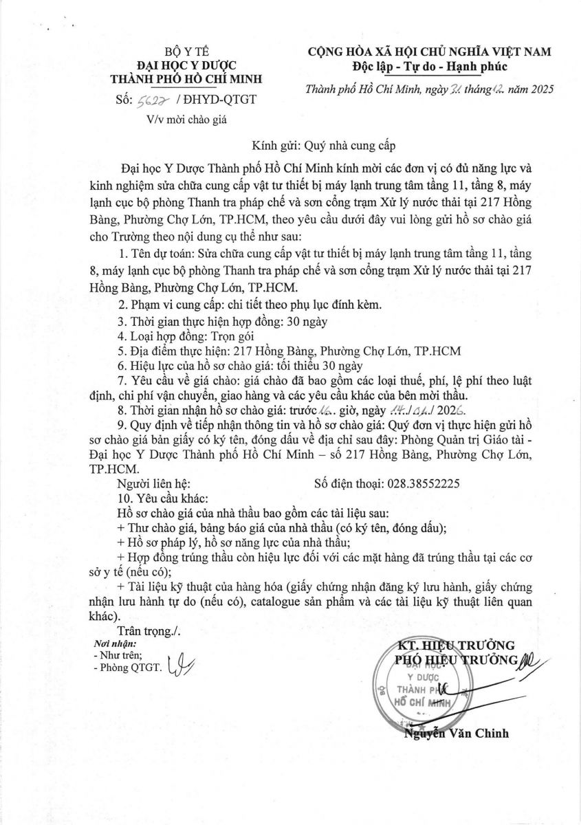 Thời gian nhận hồ sơ chào giá: từ ngày ra thông báo đến trước 16 giờ 00 ngày 14/01/2026