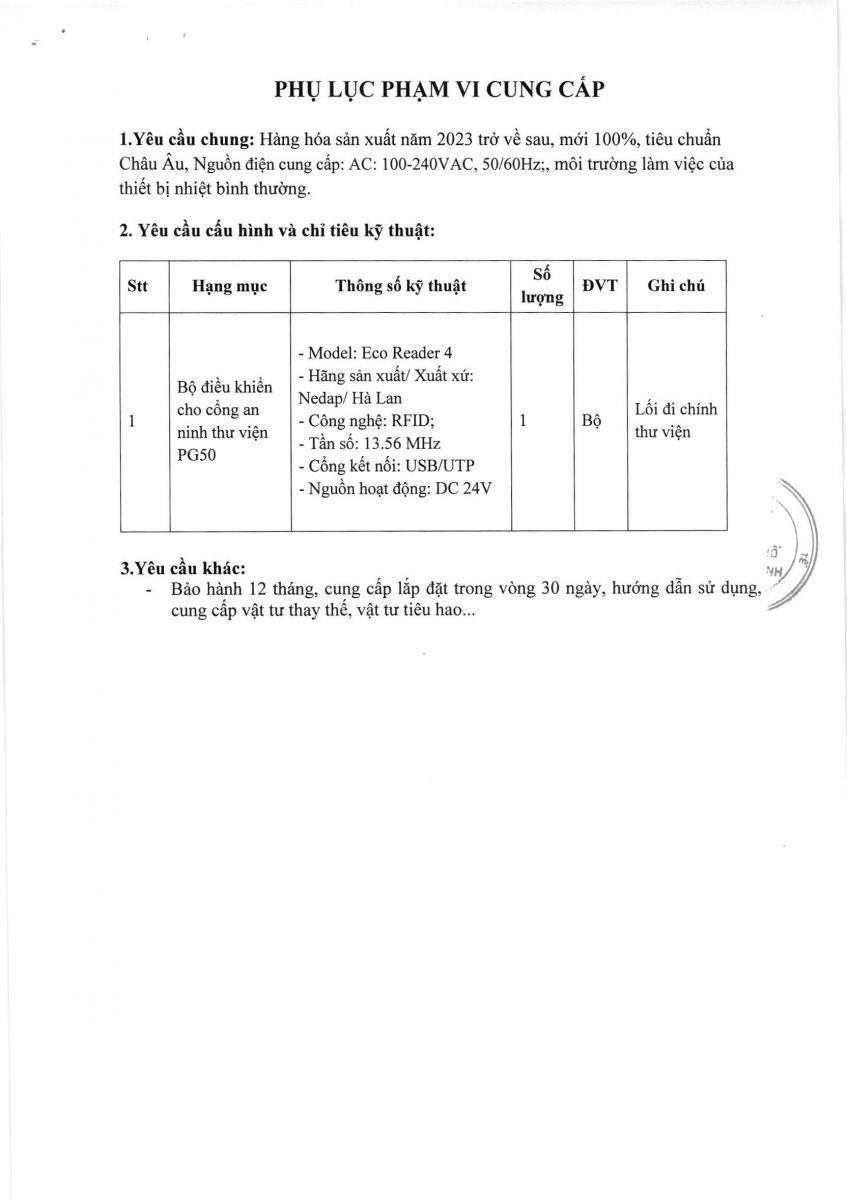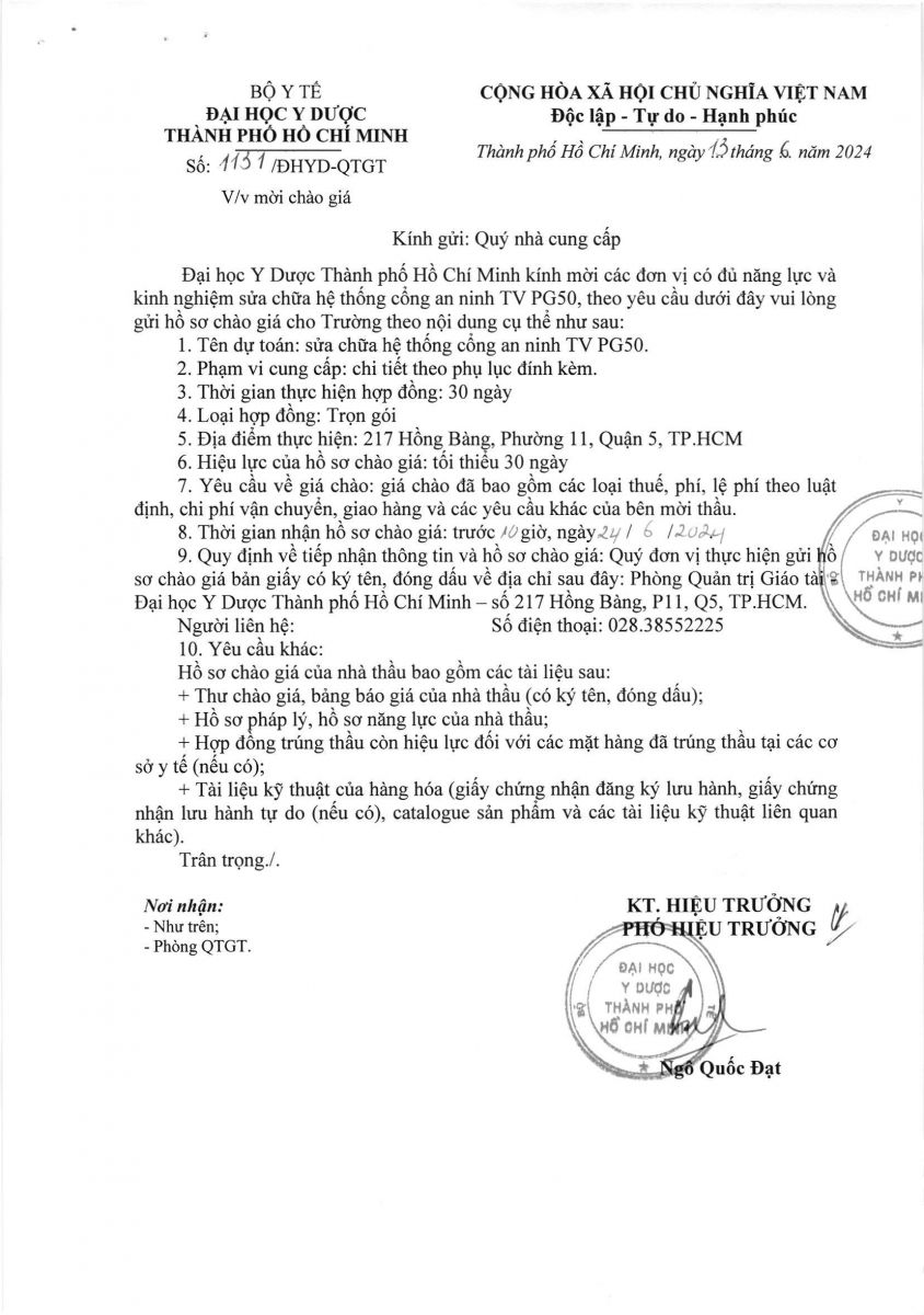 Thời gian nhận hồ sơ chào giá: từ ngày ra thông báo đến trước 10 giờ 00' ngày 24/6/2024