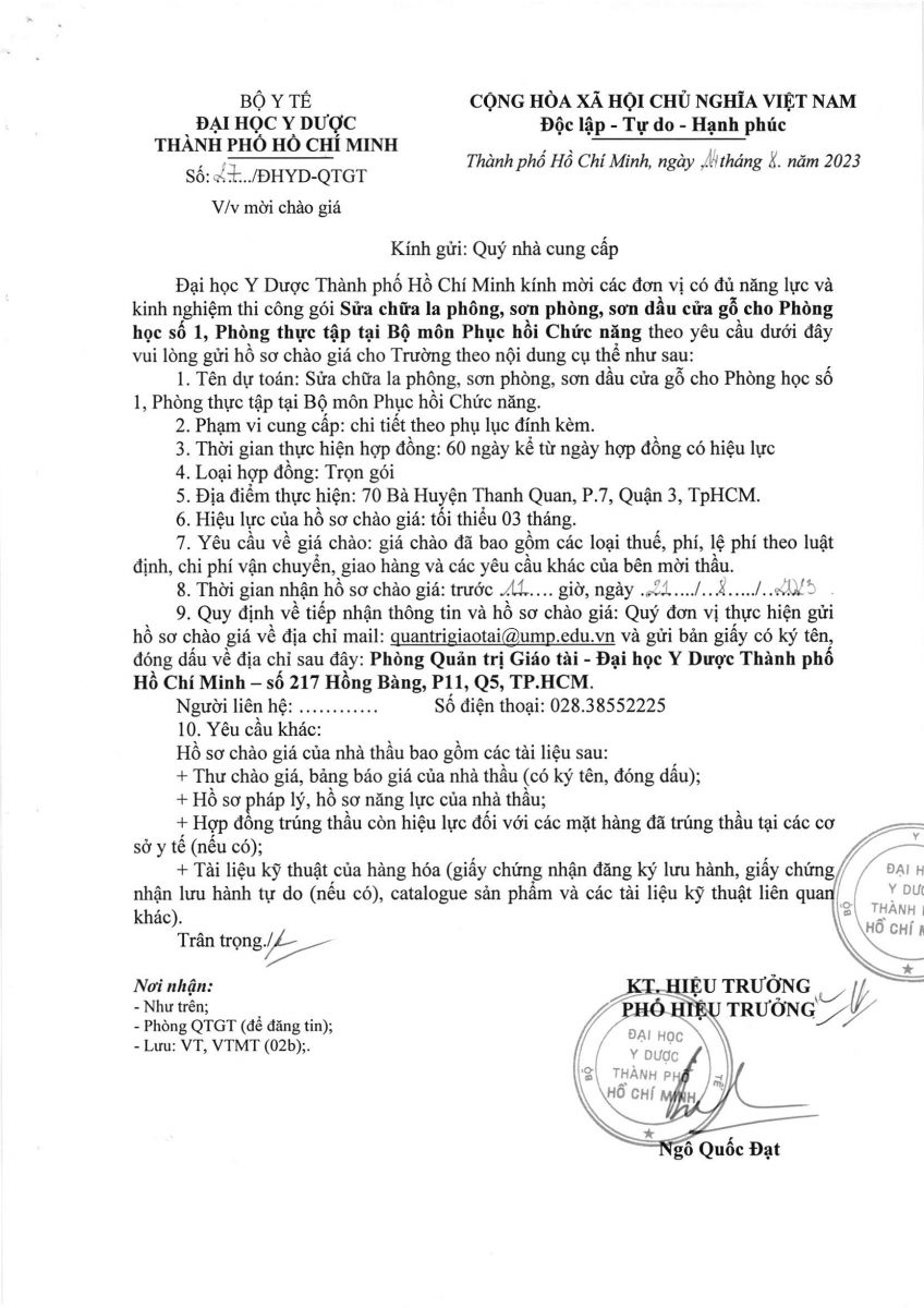 Thời gian nhận hồ sơ cháo giá: từ ngày ra thông báo đến trước 11g00 ngày 21/8/2023
