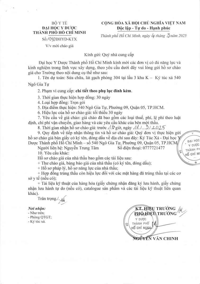 Thời gian nhận hồ sơ chào giá: từ ngày ra thông báo đến trước 16 giờ, ngày 11/3/2025