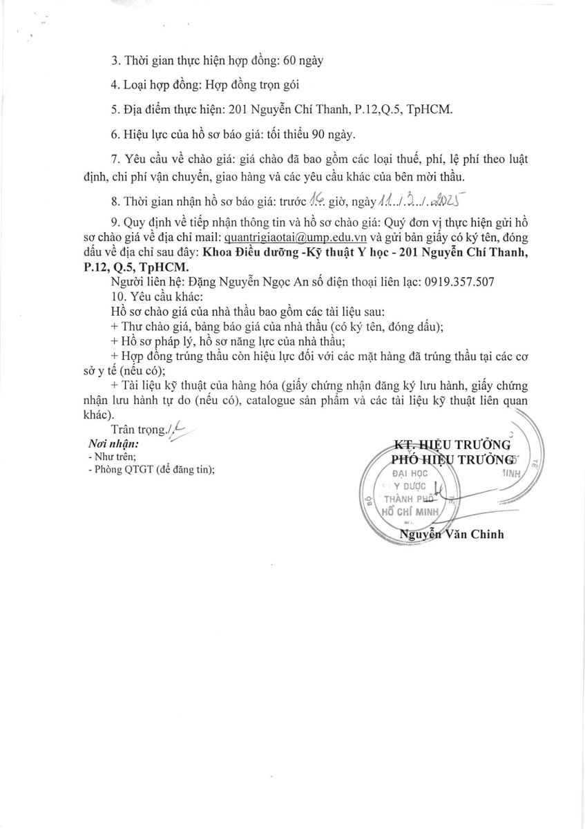 Thời gian nhận hồ sơ chào giá: từ ngày ra thông báo đến trước 16 giờ, ngày 11/3/2025