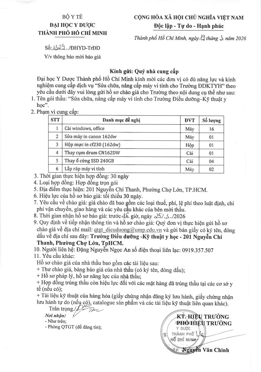 Thời gian nhận hồ sơ chào giá: từ ngày ra thông báo đến trước 16 giờ 00, ngày 25/3/2026