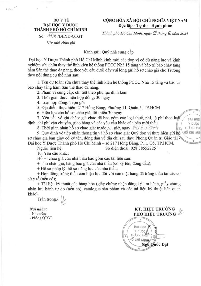 Thời gian nhận hồ sơ chào giá: từ ngày ra thông báo đến trước 10 giờ 00' ngày 24/6/2024