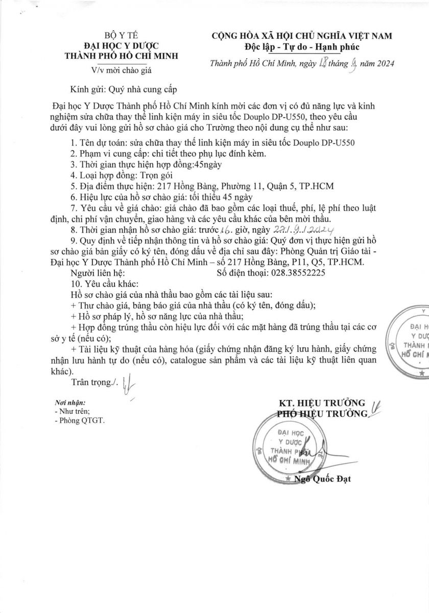 Thời gian nhận hồ sơ chào giá: từ ngày ra thông báo đến trước 16 giờ 00 ngày 27/9/2024