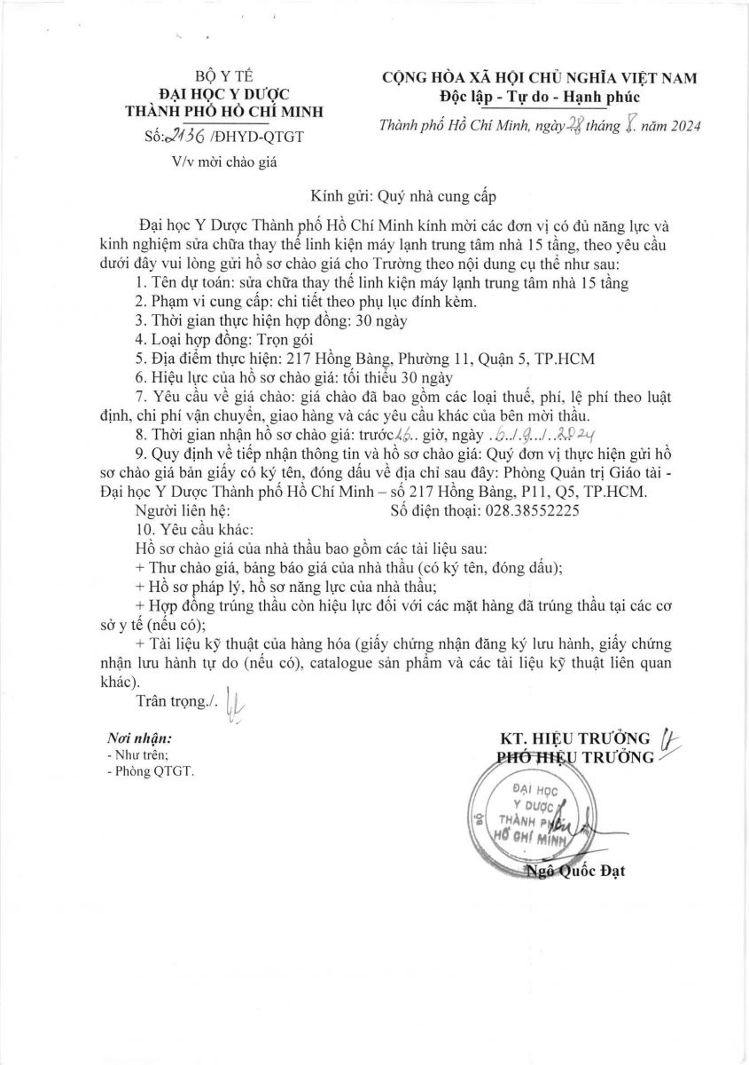 Thời gian nhận hồ sơ chào giá: từ ngày ra thông báo đến trước 16 giờ 00 ngày 06/9/2024
