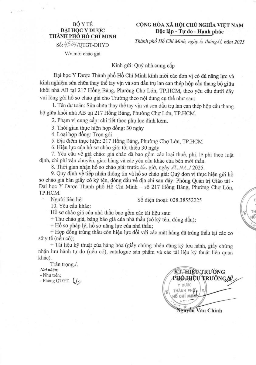 Thời gian nhận hồ sơ chào giá: từ ngày ra thông báo đến trước 16 giờ, ngày 17/11/2025