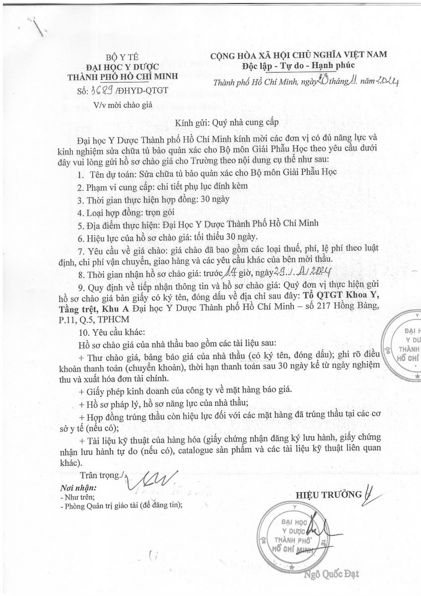 Thời gian nhận hồ sơ chào giá: từ ngày ra thông báo đến trước 14 giờ 00 ngày 29/11/2024
