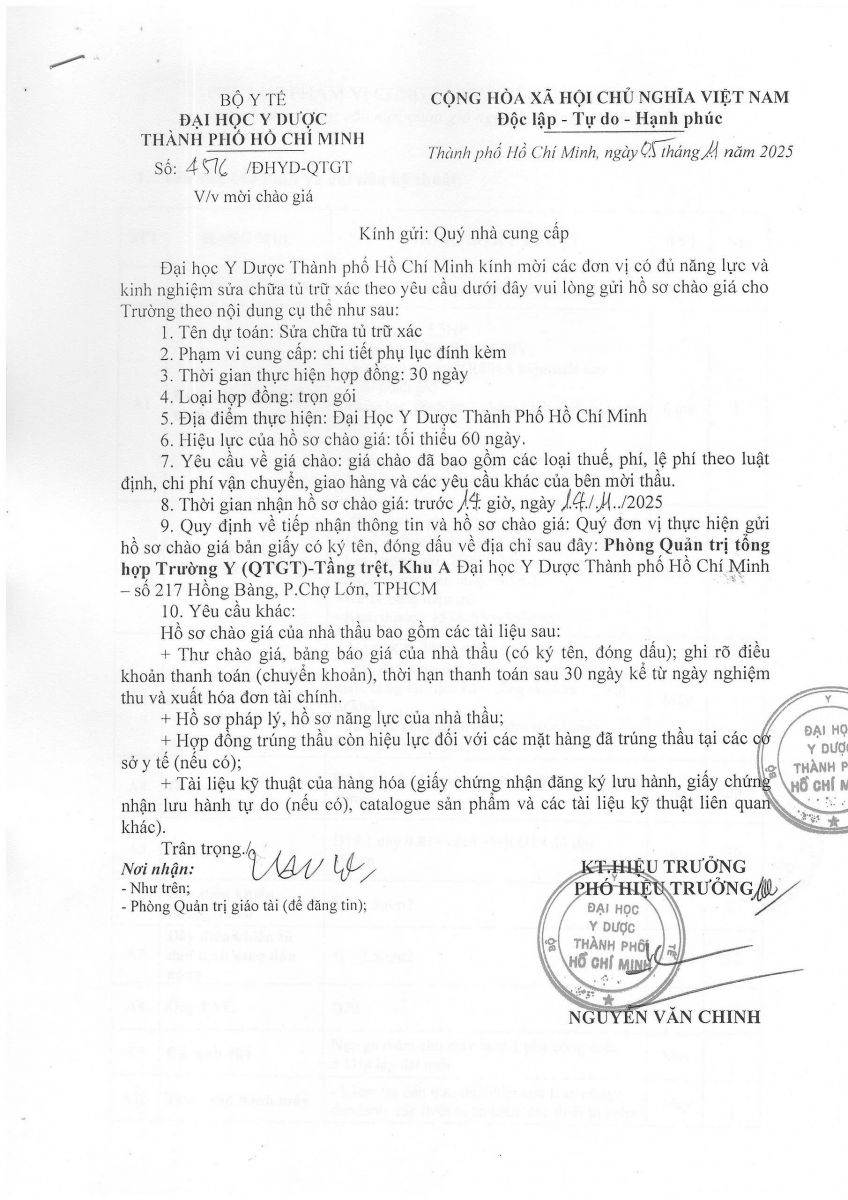 Thời gian nhận hồ sơ chào giá: từ ngày ra thông báo đến trước 14 giờ, ngày 12/11/2025