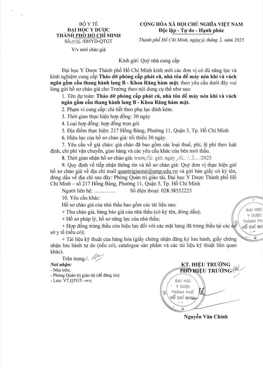 vx88 code mời chào giá: " Tháo dỡ phòng cấp phát cũ, nhà tôn để máy nén khí và vách ngăn gầm cầu thang hành lang B- Khoa RHM- Đại Học vx88b TP.HCM