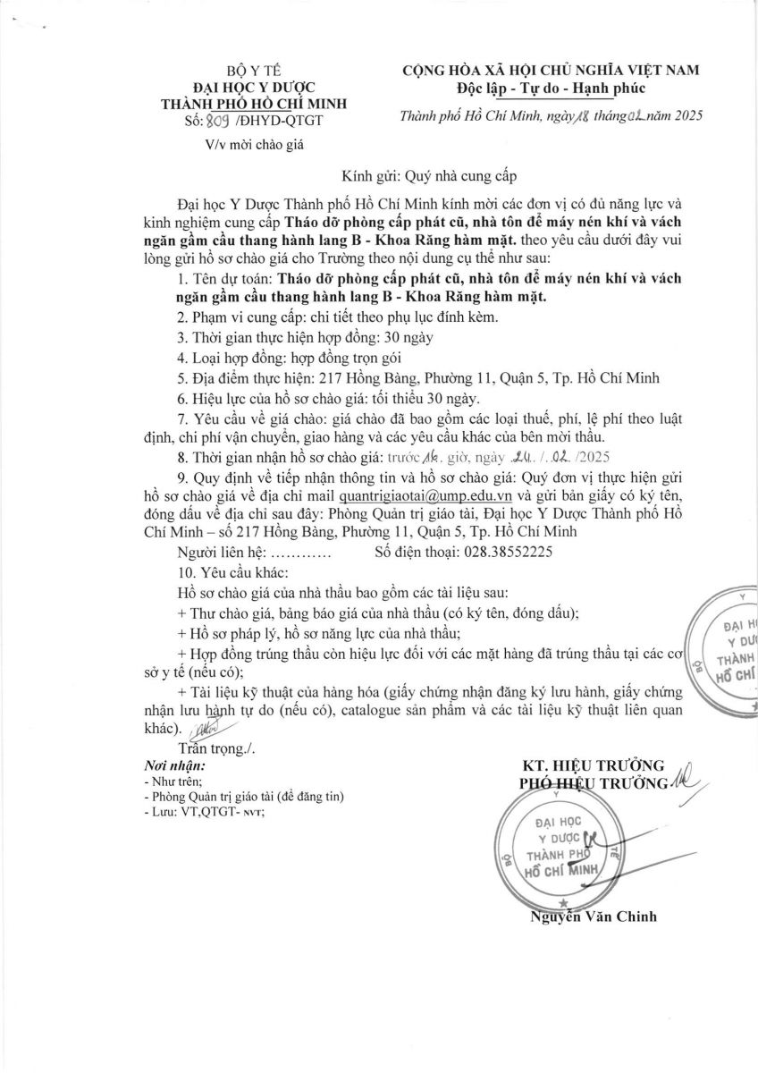 vx88 code mời chào giá: " Tháo dỡ phòng cấp phát cũ, nhà tôn để máy nén khí và vách ngăn hành lang B Khoa RHM- Đại Học vx88b TP.HCM