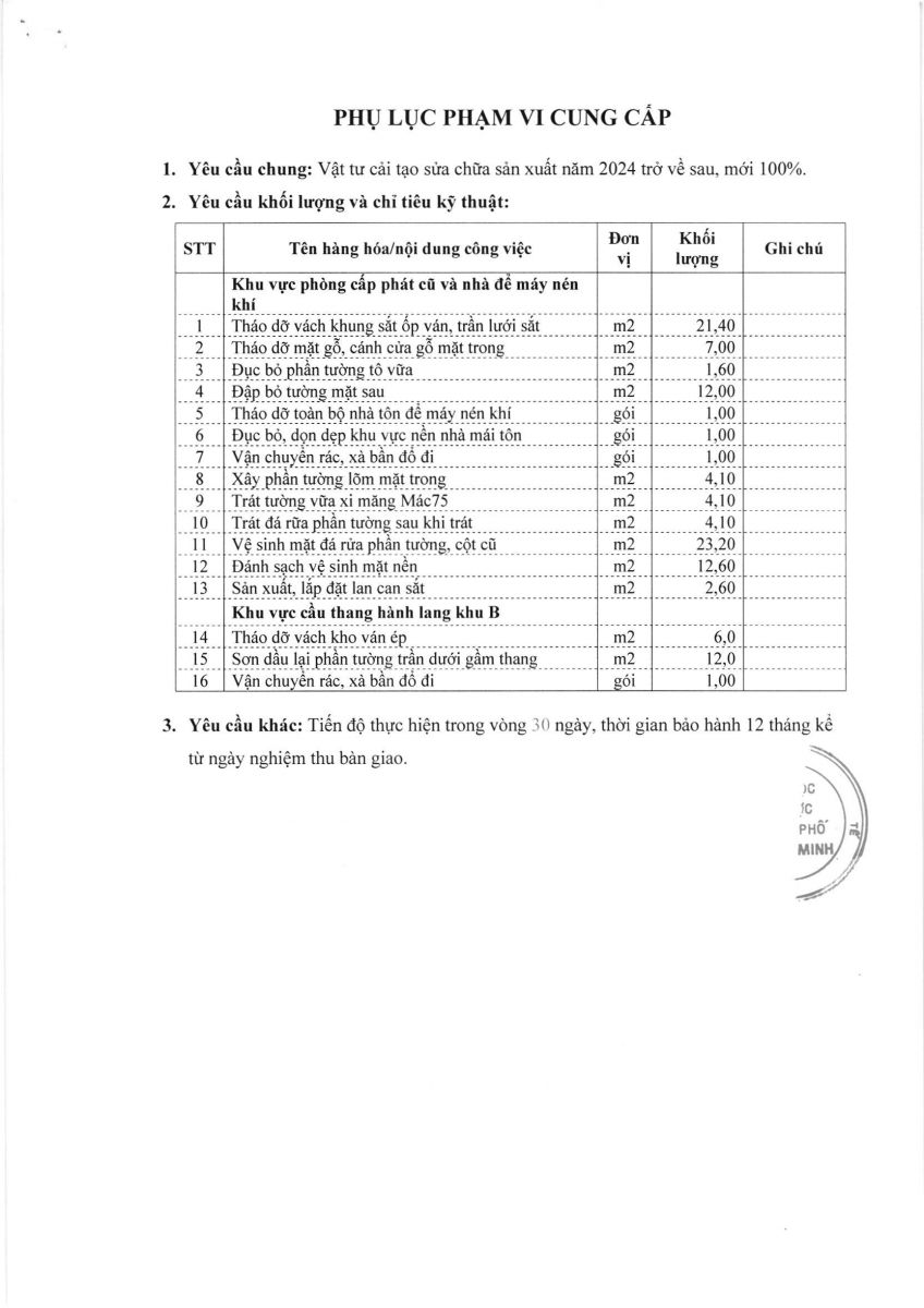 Thời gian nhận hồ sơ chào giá: từ ngày ra thông báo đến trước 16 giờ, ngày 24/02/2025