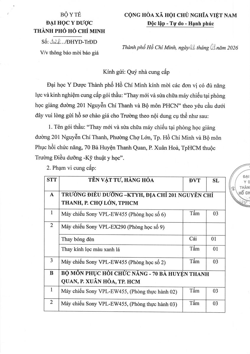 Thời gian nhận hồ sơ chào giá: từ ngày ra thông báo đến trước 16 giờ, ngày 28/01/2026