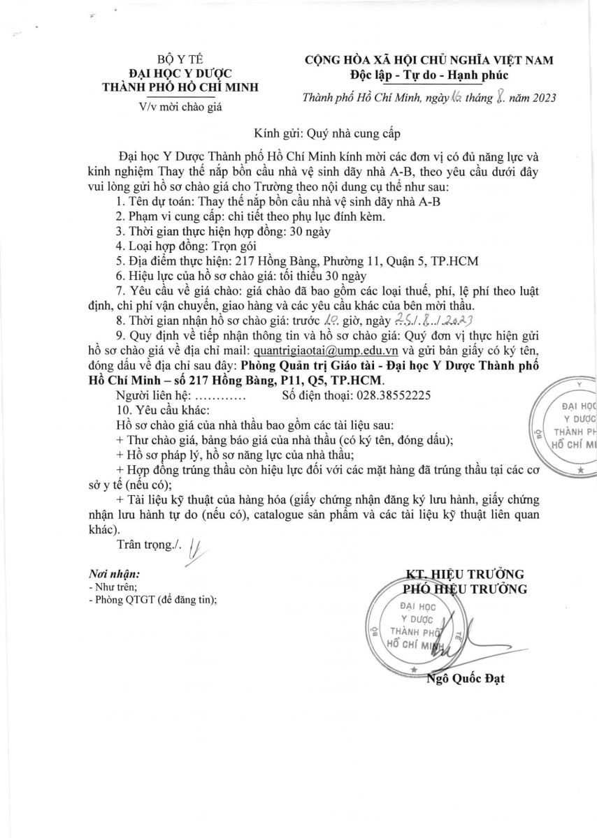Thời gian nhận hồ sơ chào giá: từ ngày ra thông báo đến trước 10g00 ngày 25/8/2023