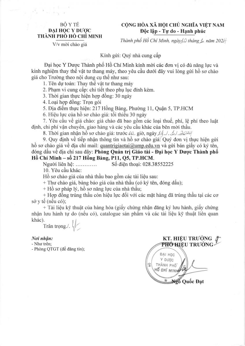 Thời gian nhận hồ sơ chào giá: từ ngày ra thông báo đến trước 10g00 ngày 19/01/2024