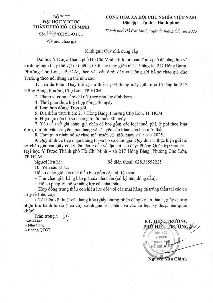 Thời gian nhận hồ sơ chào giá: từ ngày ra thông báo đến trước 16 giờ ngày 14/10/2025