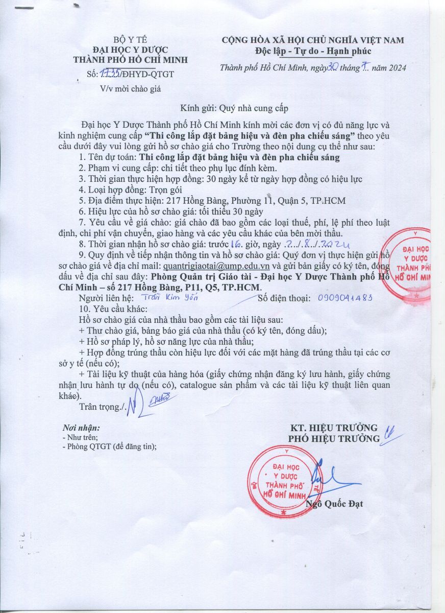 Thời gian nhận hồ sơ chào giá: từ ngày ra thông báo đến trước 16 giờ 00 ngày 02/8/2024