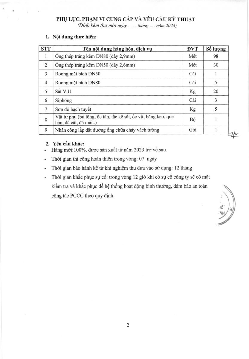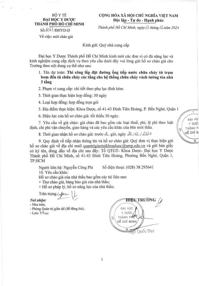 Thời gian nhận hồ sơ chào giá: từ ngày ra thông báo đến trước 16 giờ, ngày 20/12/2024